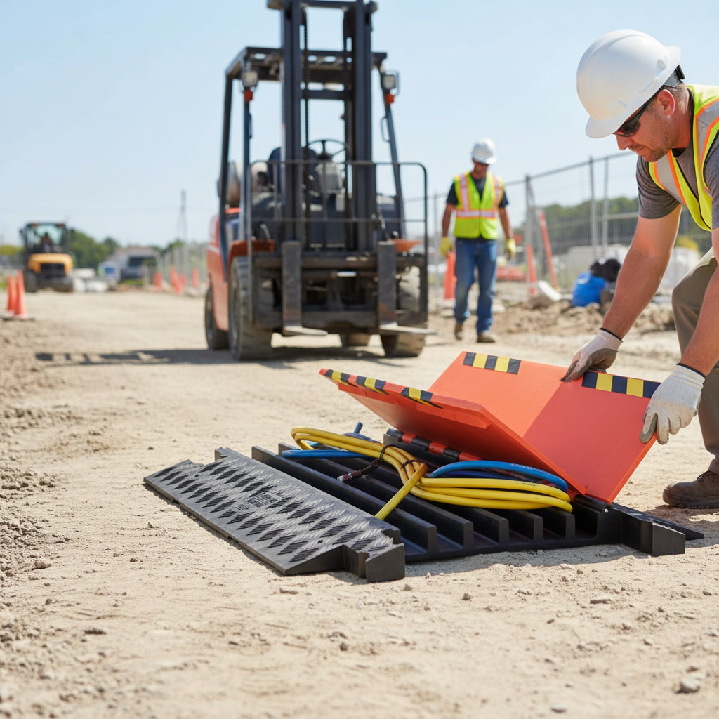 This Premium 5 Channel Heavy Duty Cable Protector Ramp is designed to provide a safe and organized way to manage cables in various environments. Ideal for industrial, commercial, and outdoor use, this cable ramp helps prevent tripping hazards while protecting cables from damage.