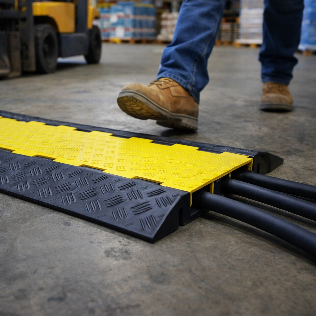 The Ramp People's interlocking 3 channel heavy duty cable protector speed bumps.