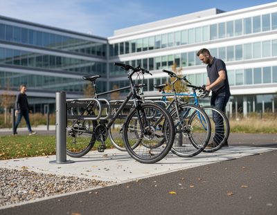 This double-sided bicycle rack is an ideal solution for bike parking areas that require increased capacity, allowing for bicycles to be parked on both sides. It utilizes the same modular system as its single-sided counterpart, enabling the creation of customized cycle parking areas tailored to specific needs.