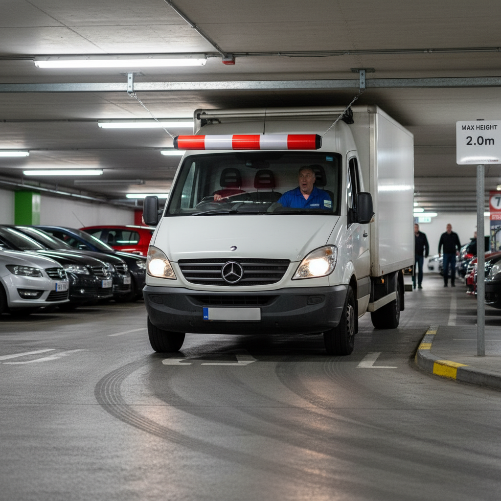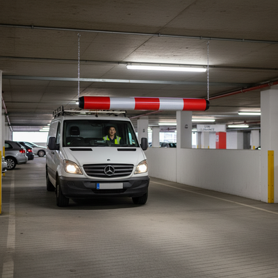 The bar features retro-reflective banding, ensuring high visibility and making it easy for drivers to see from a distance as they approach a car park or restricted structure. This visual alert provides maximum safety by warning drivers of any height restrictions in advance. In the event that a vehicle does come into contact with the bar, it produces an audible sound, alerting the driver to the potential hazard.