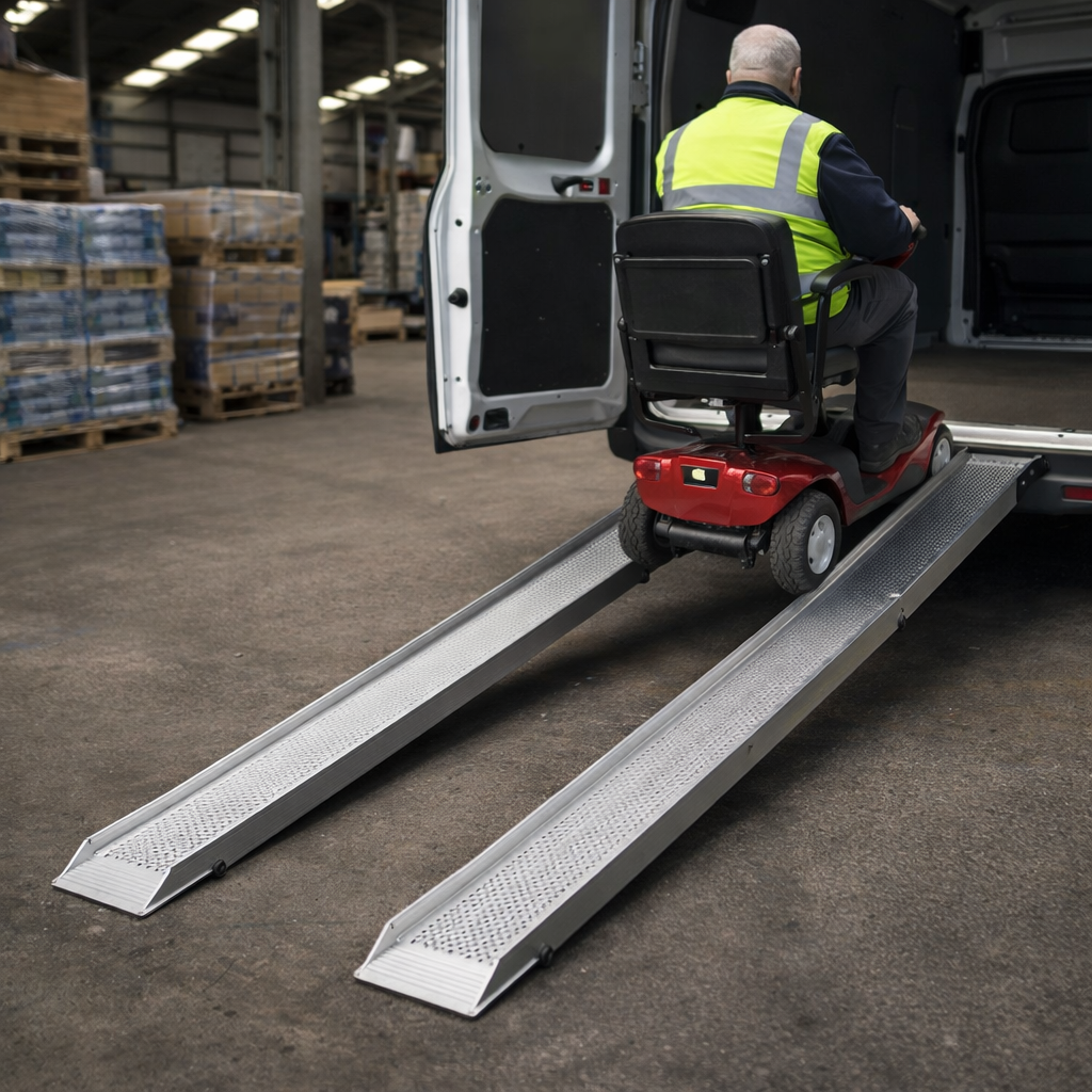 Our folding mobility scooter ramps are designed to offer effortless mobility and easy access for powered wheelchairs. Available in three sizes: 1100mm, 1500mm, and 2000mm, these ramps feature low-profile edges suitable for electric wheelchairs and mobility scooters.