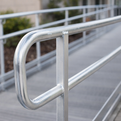 Enhance the safety and stability of your wheelchair ramps with this aluminium handrail system. Designed for use on both sides of the ramp, these handrails provide extra support and are suitable for outdoor use. Specifically made to complement wheelchair ramps, these handrails ensure easy access and improved security.