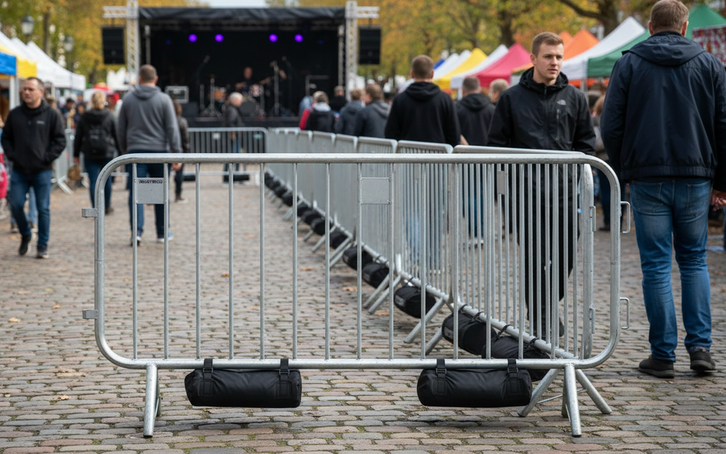 To use the ballast bag, simply fill it with sand, attach the buckles to the metal pedestrian barriers, and ensure a snug fit. This will provide the necessary stability for your barriers on-site.