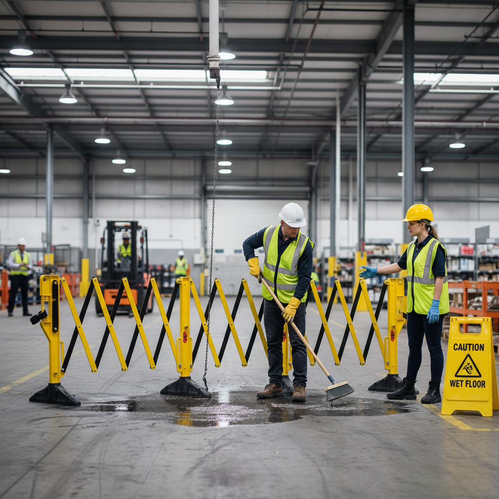 Its compact design allows for easy storage, making it ideal for various applications and perfect for temporary use when closing off areas. This barrier is suitable for both indoor and outdoor settings, ensuring safety and security wherever needed.
