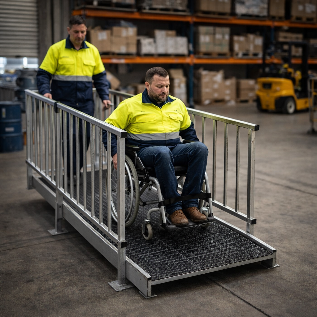 Our Modular Ramp Kit offers a versatile and portable solution ideal for both indoor and outdoor use. Featuring balustrade handrails and a mesh anti-slip surface, this ramp is designed for ease of assembly and flexibility in configuration.