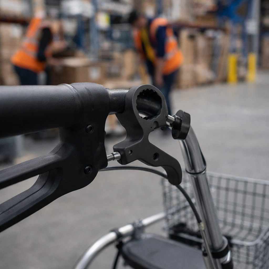 - Designed for use with rollators to allow easy braking with one hand.