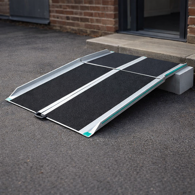 Is this ramp suitable for electric wheelchairs? Yes, the ramp is designed to accommodate electric wheelchairs.