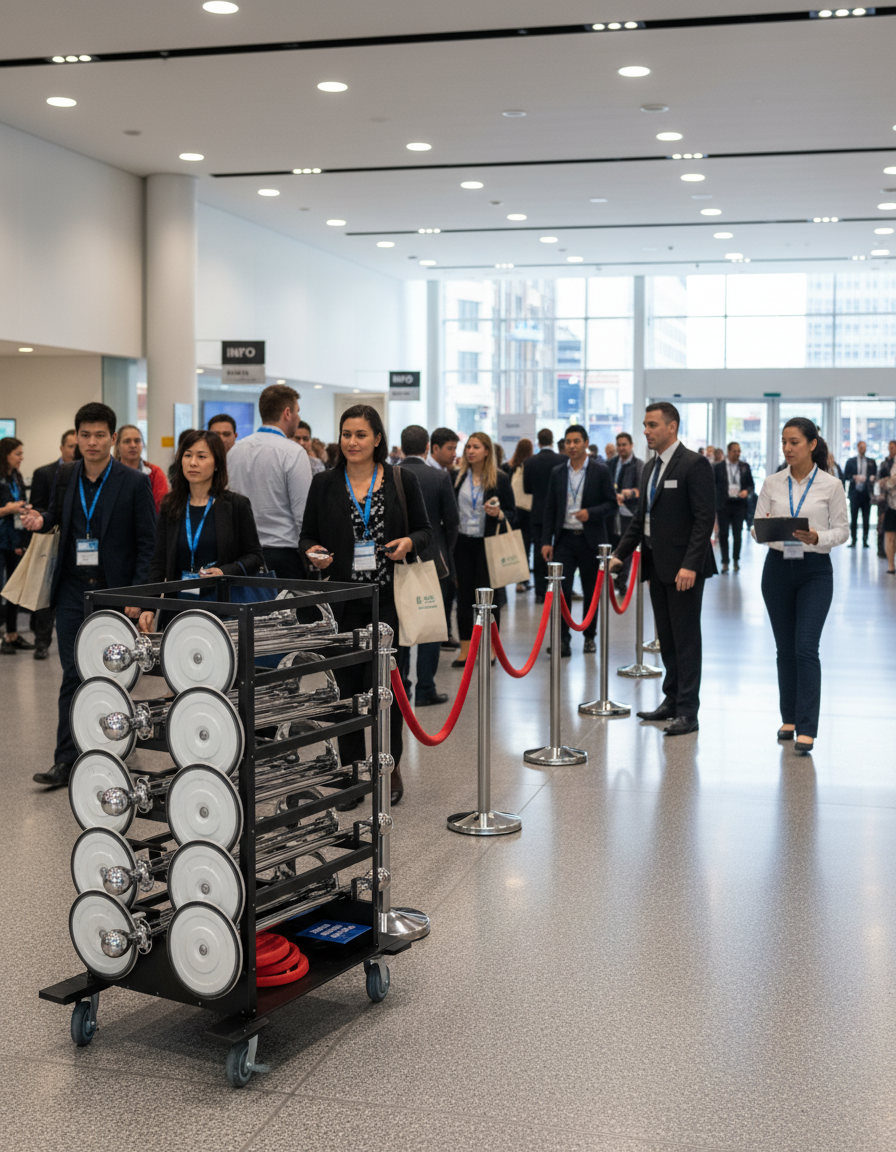 The barrier posts are crafted from high-quality materials, ensuring durability and a professional look. The red braided ropes enhance visibility, while the polished chrome finish adds a touch of elegance. The transport trolley simplifies transportation and storage, making it easy to set up and take down at events.