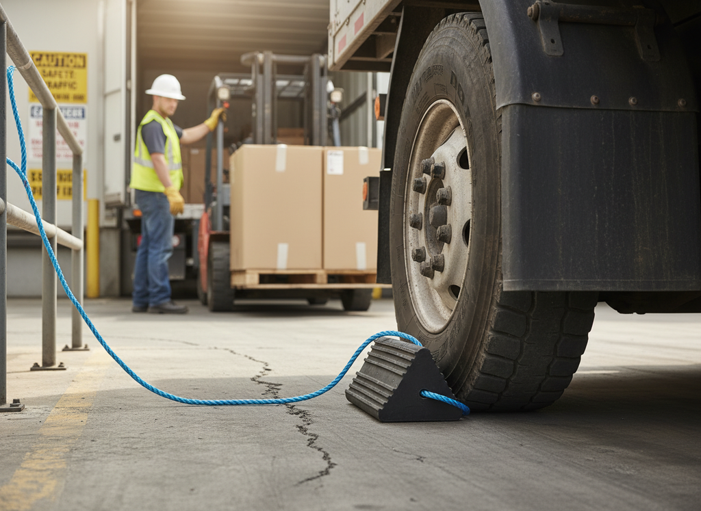 A professional-grade wheel chock, ideal for airport ground crews, hangar operations, and private aviation.