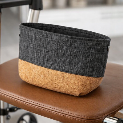 This Indoor Rollator Accessory Bag is designed to enhance your mobility experience. It is perfect for carrying essentials like phones and keys while on the move. The bag features a stylish woven fabric with a durable cork base, ensuring both functionality and aesthetics.